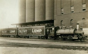 Return to BlogToday’s photo depicts Western Cable Railway Company’s Engine No. 4 hauling Falstaff beer in refrigerated railroad cars past the Lemp Brewery facility. The date is between 1917 and 1927, according to the Missouri History Museum.